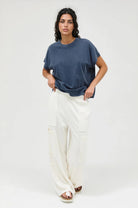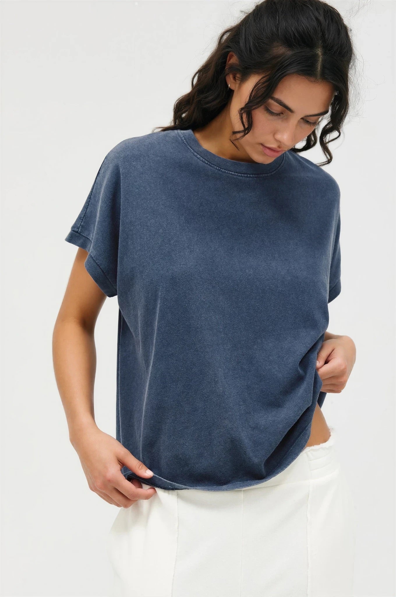 The Cora Navy Mineral Tee is your new go-to for laid-back style. Featuring a timeless crew neck and charming capped sleeves, this tee boasts a relaxed, slightly boxy silhouette that feels as good as it looks. The standout mineral wash gives it that coveted vintage vibe—like you've owned it forever.