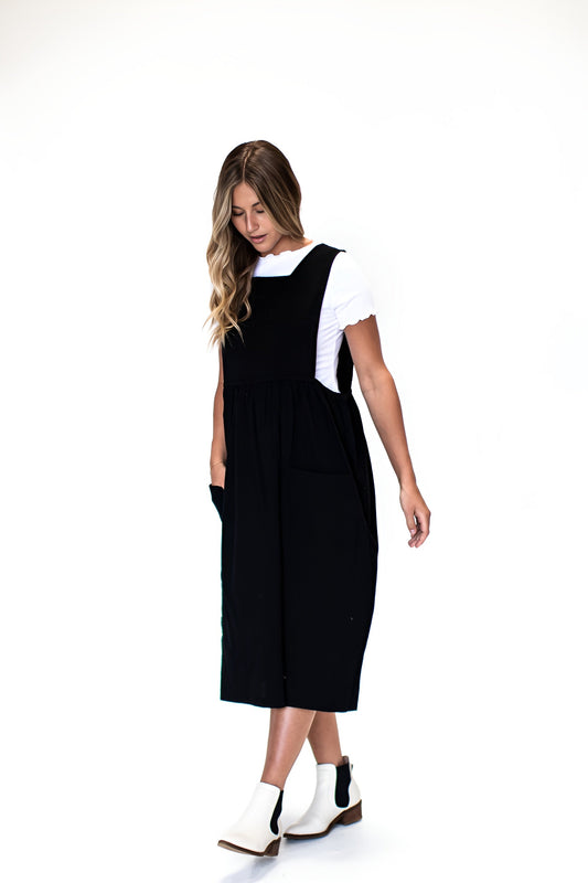Elizabeth Overall Dress in Ivory Charcoal