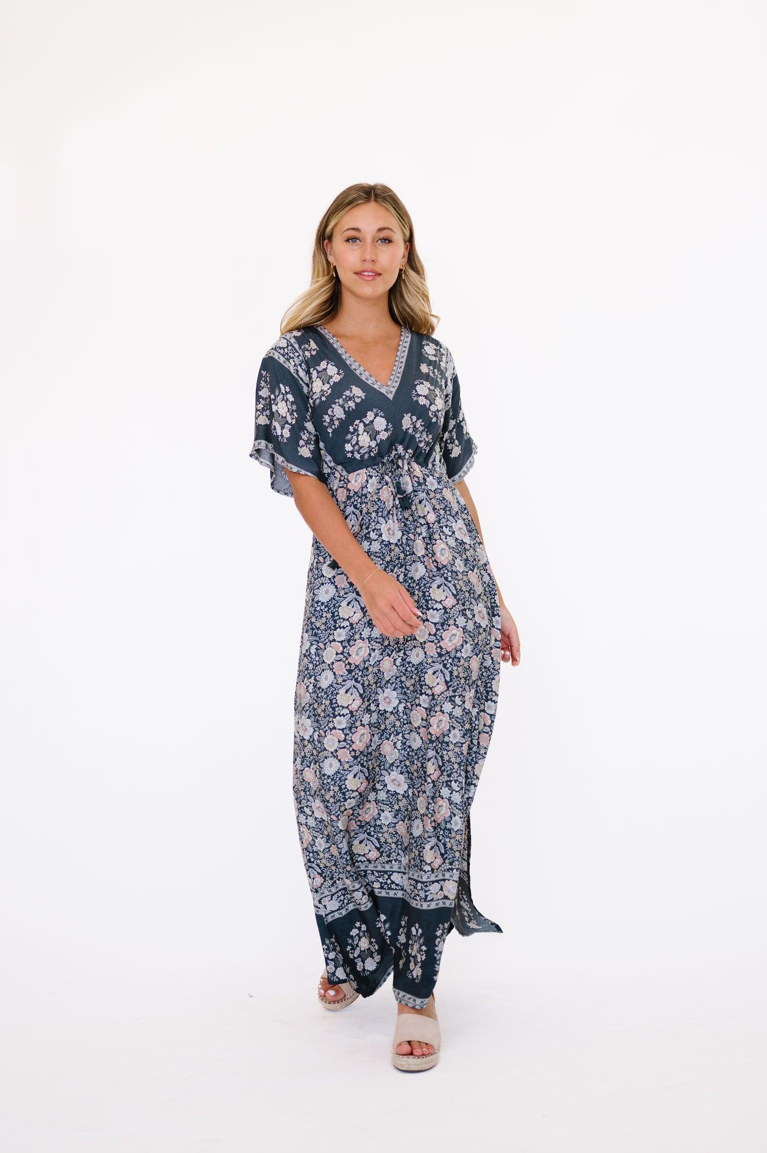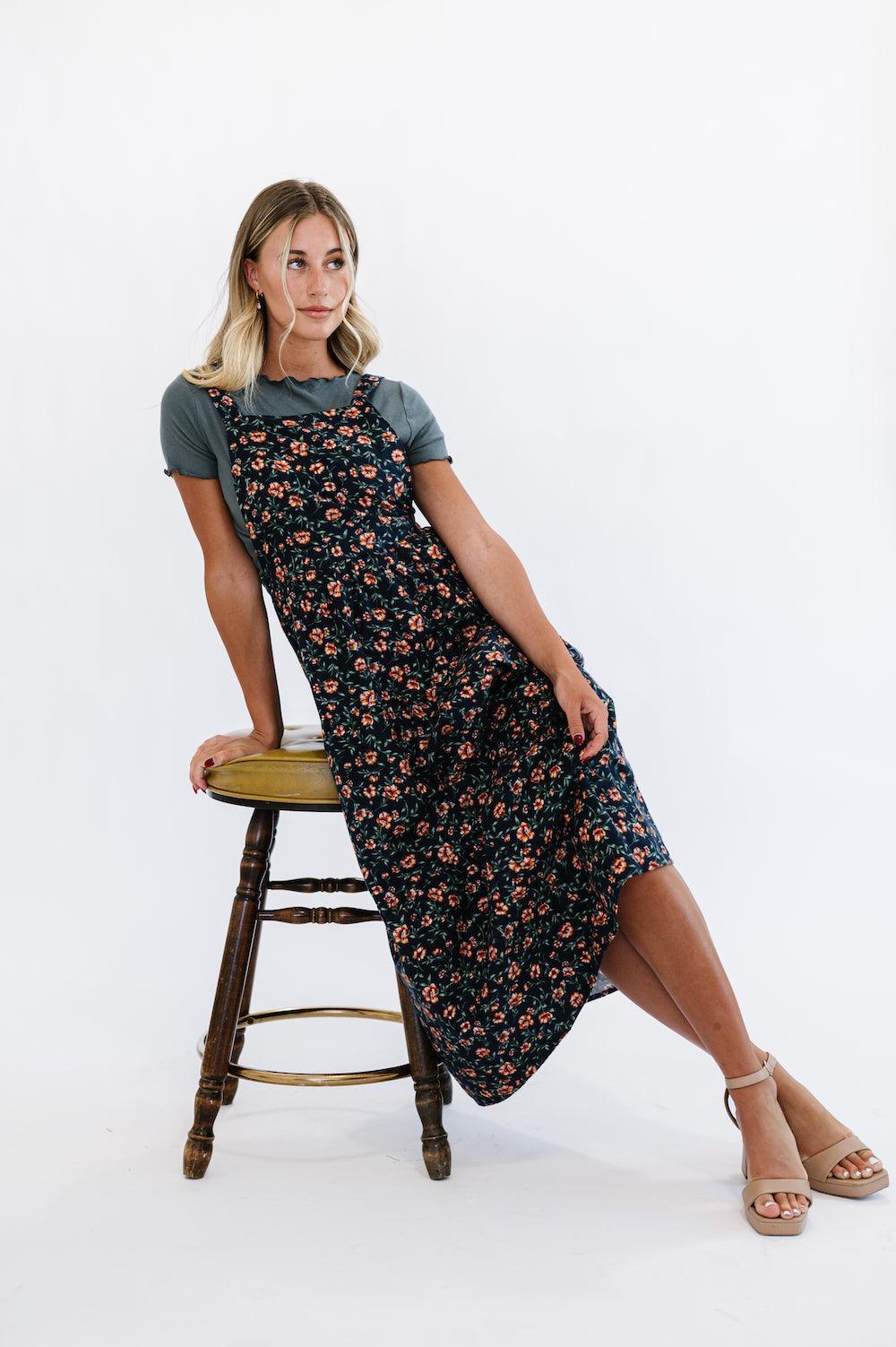 Cypress Midi Dress in Blue Floral - Plus