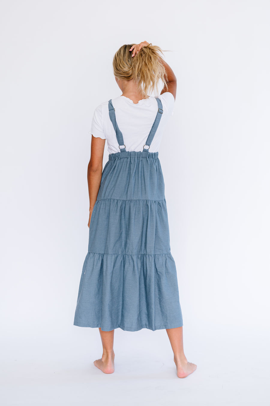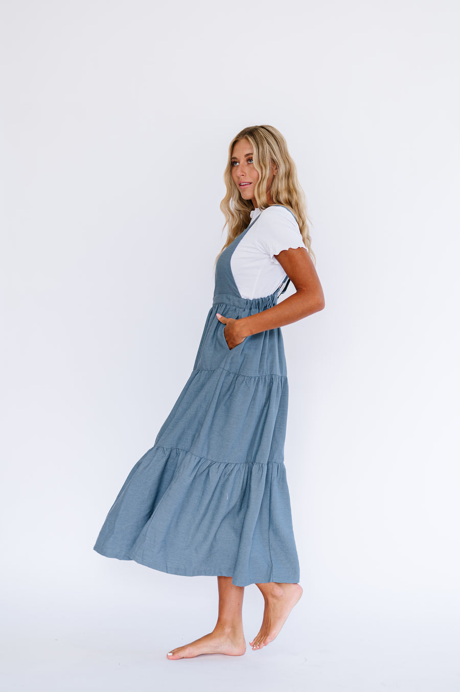 Shay Overall Dress in Denim Blue