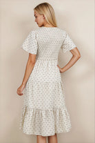 Introducing our newest arrival, the Tayla Cotton Midi Dress in Cream. Made from a luxurious, heavy fabric, this dress features a stretchy bodice and a midi length, making it the perfect silhouette for any occasion. Subtle olive green dot's throughout add a playful feel! Fully lined, hip pockets included.