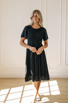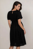 Indulge in elegance with the Maylee Dress. This exquisite dress boasts a smocked bodice, elastic waistband, and round neck for a flattering silhouette. The lined skirt adds a luxurious touch, while the delicate floral sheen pattern elevates the dress to new heights of sophistication.