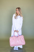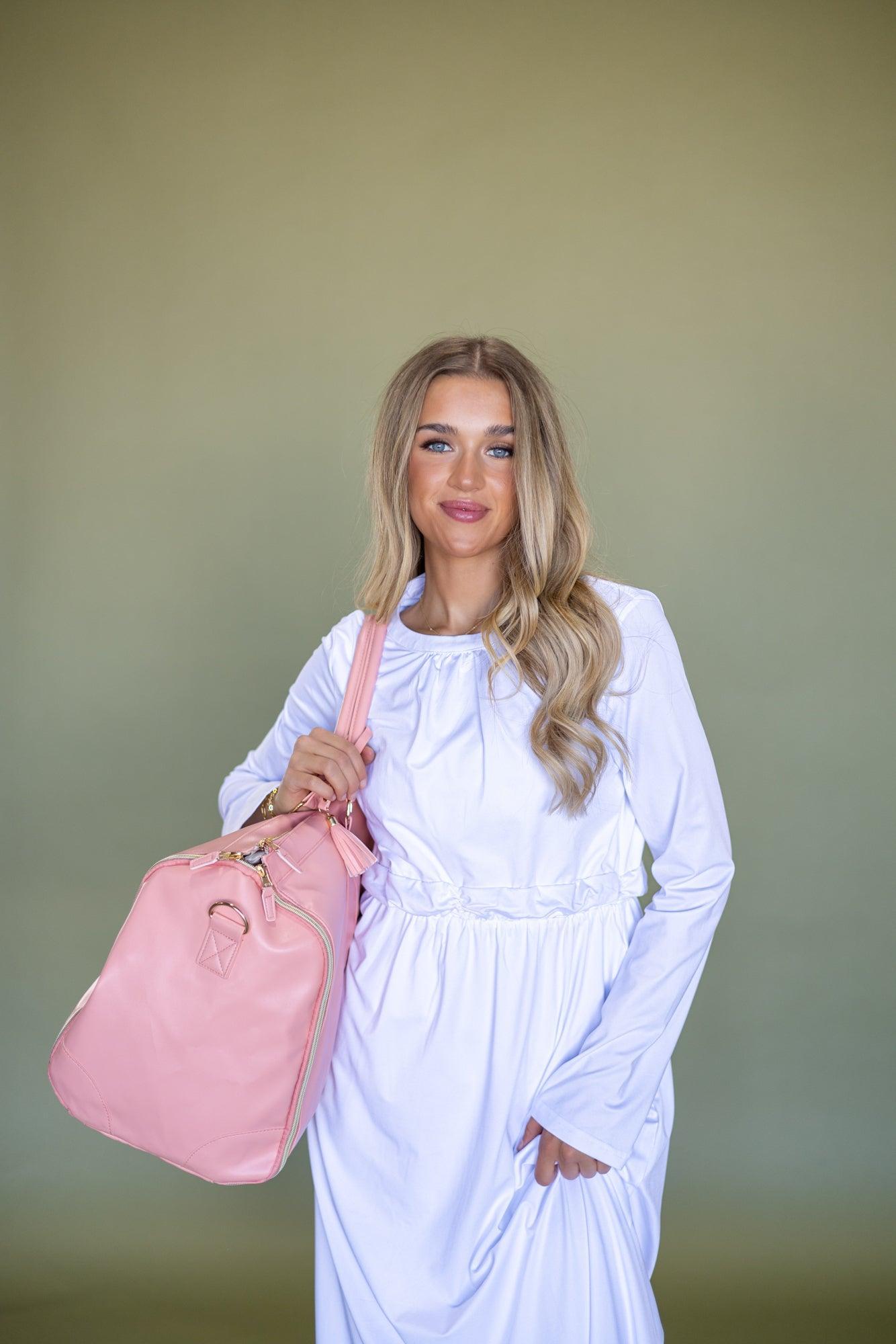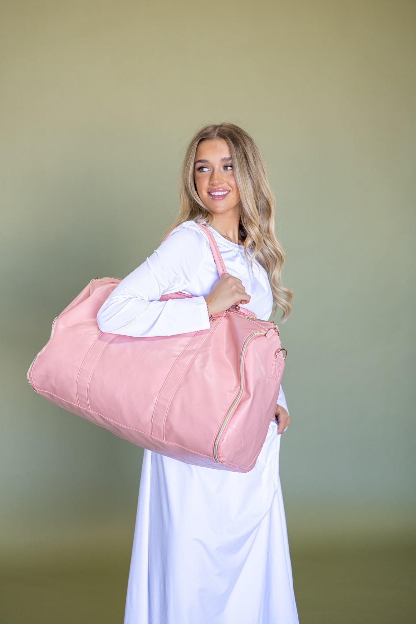 Introducing the Lilly Temple Bag - the ultimate accessory for your temple visits. With its spacious design, pink hue, and shoulder strap, it effortlessly fits multiple outfits and shoes. The built-in hanger port allows for easy organization, while the numerous pockets keep your essentials within reach.