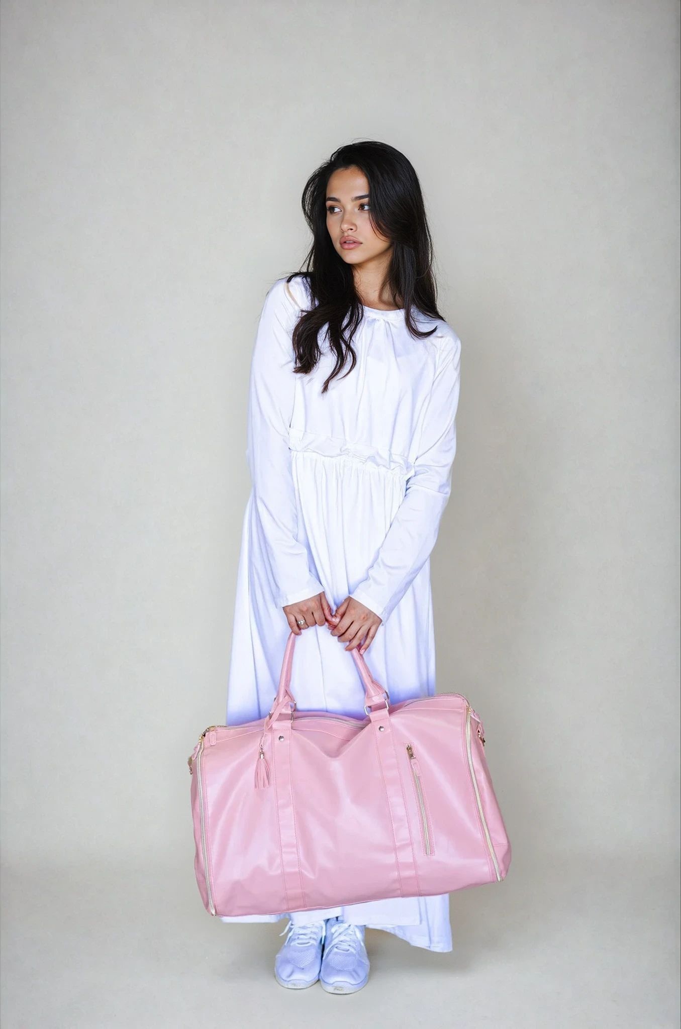 Introducing the Lilly Temple Bag - the ultimate accessory for your temple visits. With its spacious design, pink hue, and shoulder strap, it effortlessly fits multiple outfits and shoes. The built-in hanger port allows for easy organization, while the numerous pockets keep your essentials within reach.