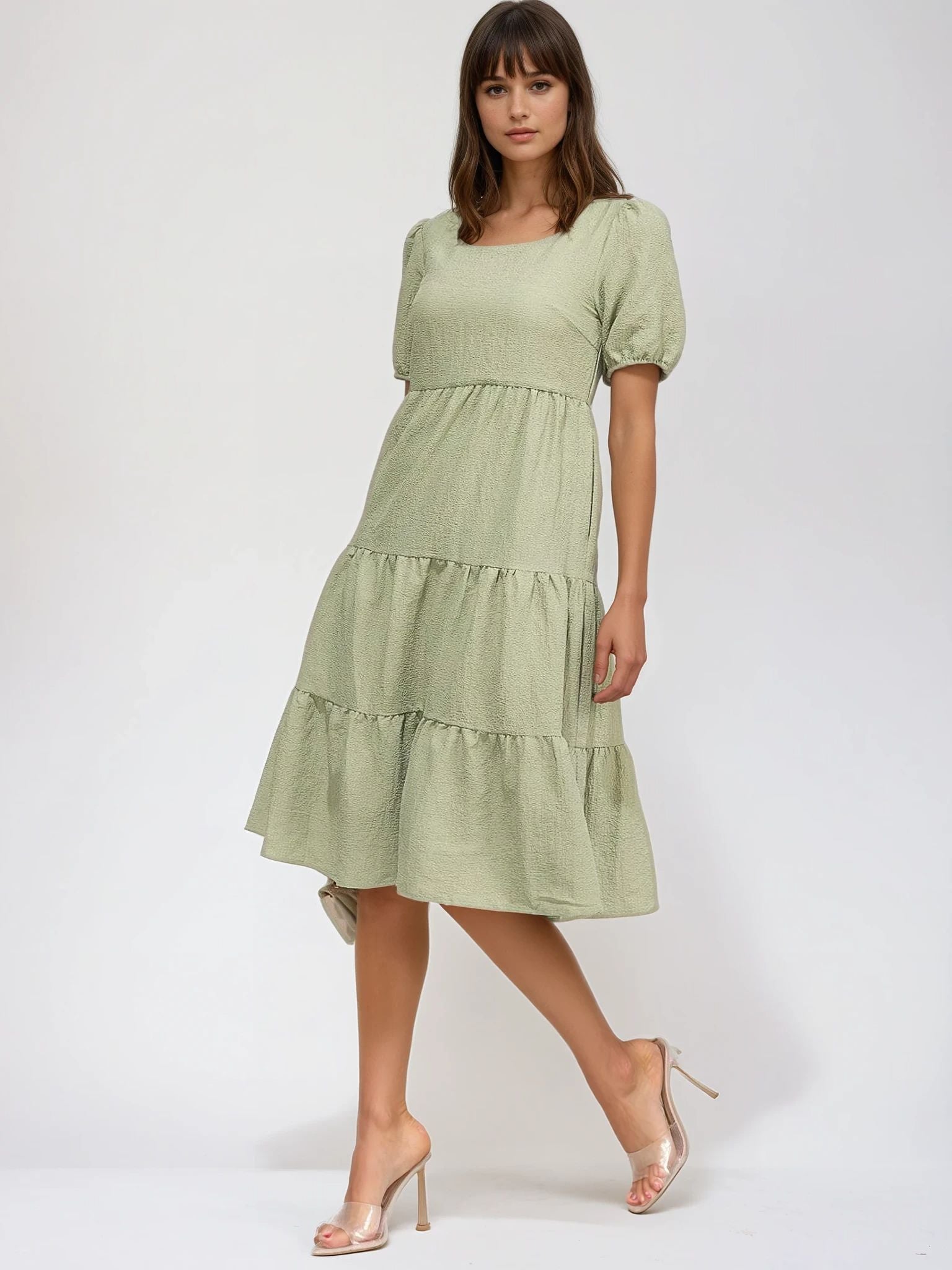 Erin Short Sleeve Square Neck Tiered Midi Dress
