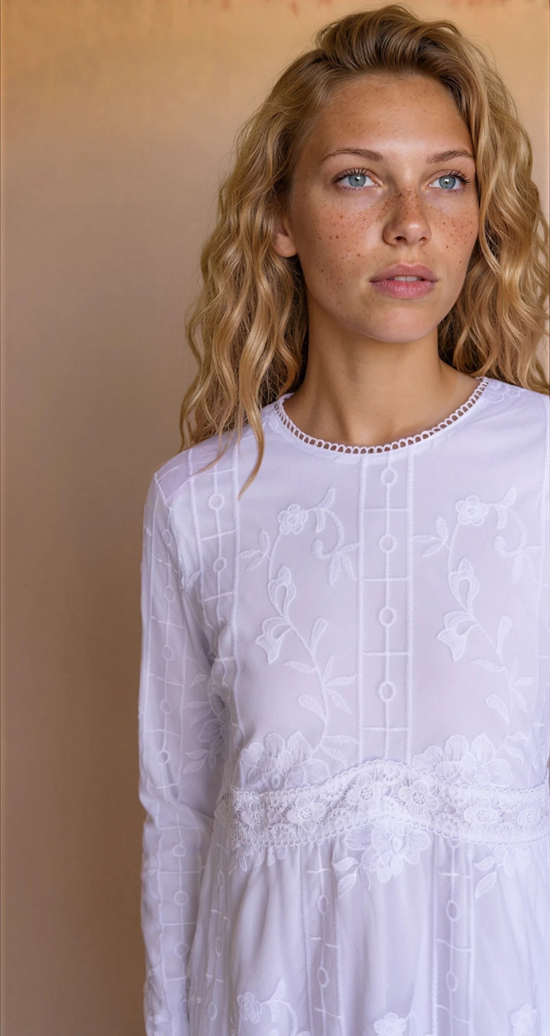 Experience elegance and comfort with the Sarah Temple Dress. Adorned with delicate white lace embroidery, this fully lined white dress features convenient hip pockets and a back zipper closure for effortless wear. It's perfect for tall girls. Add this LDS Temple dress to your collection for timeless style. Available as our longest temple dress, it's intended for women 5'9 and up.