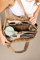 Designed for temple attendance and everyday elegance, the Amara Quilted Traveler Tote combines thoughtful organization with refined style. The padded shoulder strap ensures comfort during extended wear, while the quilted exterior resists daily wear. Inside, discover two drink pockets, a deep zip sidewall pocket, two open sidewall compartments, and dedicated slots for pens or lipstick—everything you need within reach. A rear zip pocket adds security for valuables, and the zip-top closure keeps contents protected. The wipeable interior makes maintenance effortless, making this tote as practical as it is polished.