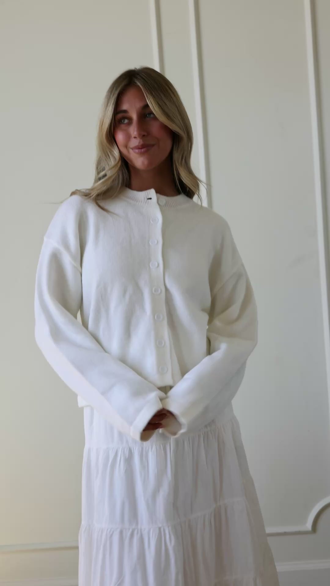 Introducing the Marilee LDS temple sweater, a button-up white cardigan carefully crafted for both style and practicality. With long sleeves and luxurious fabric, stay cozy and chic on during your services. Ideal for any fashion-forward individual seeking elegance and versatility.