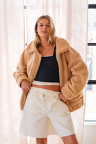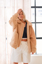 Elevate your fall wardrobe with the Teddy Sherpa Jacket, a cozy and versatile layering piece designed for effortless style. Crafted for warmth and comfort, this trendy jacket seamlessly blends softness with sophistication, making it the perfect staple to complement your seasonal ensembles. Easily layered over your favorite outfits, it provides both casual charm and refined appeal throughout the cooler months.