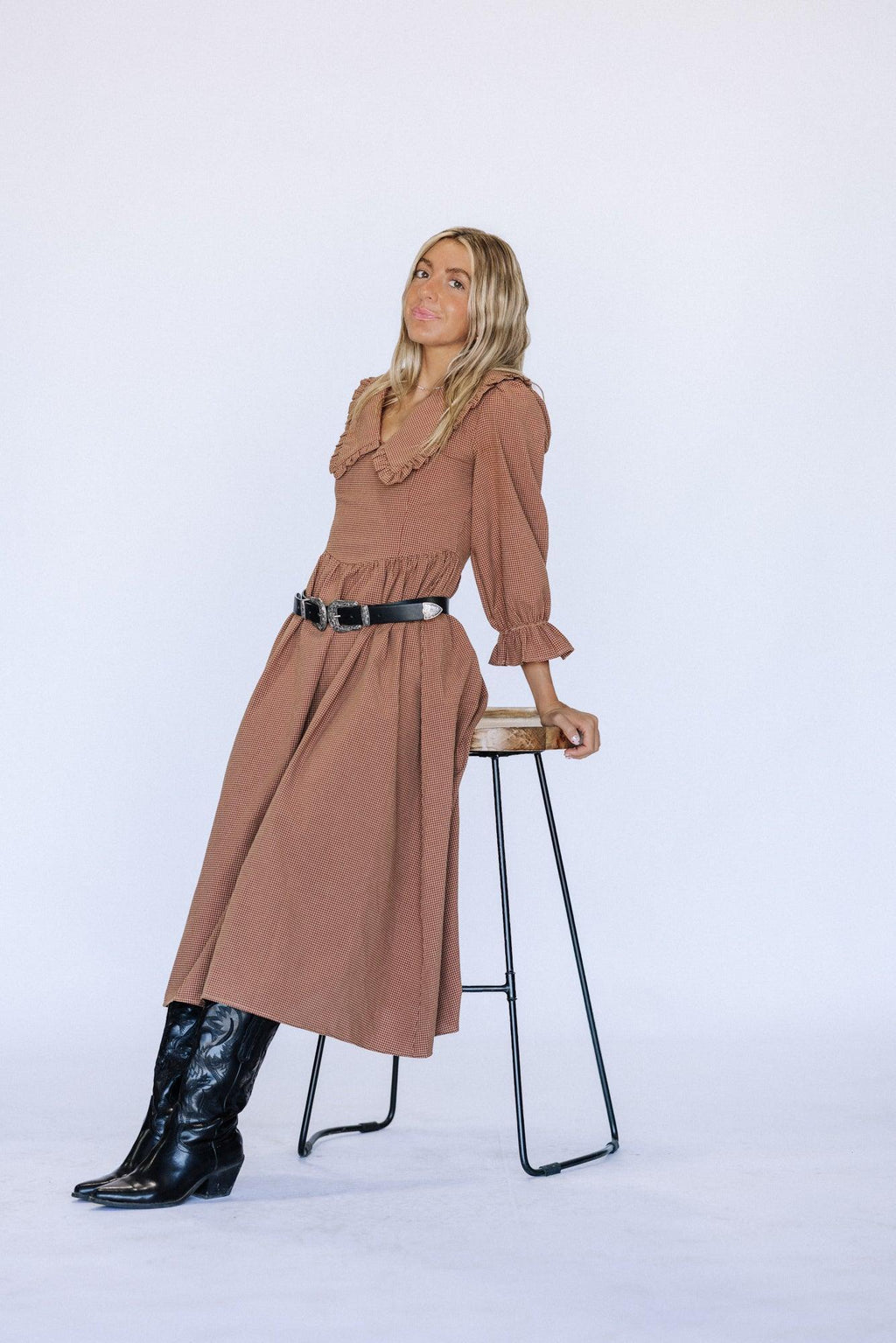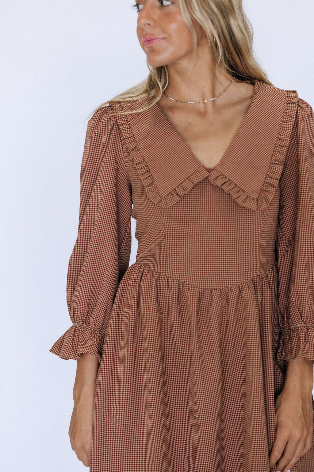 Indulge in elegance with the Samantha Midi Dress in Burgundy. Its stunning midi length and intricate collar detail make it the perfect dress for any holiday occasion. Exude sophistication and style with this luxurious piece.