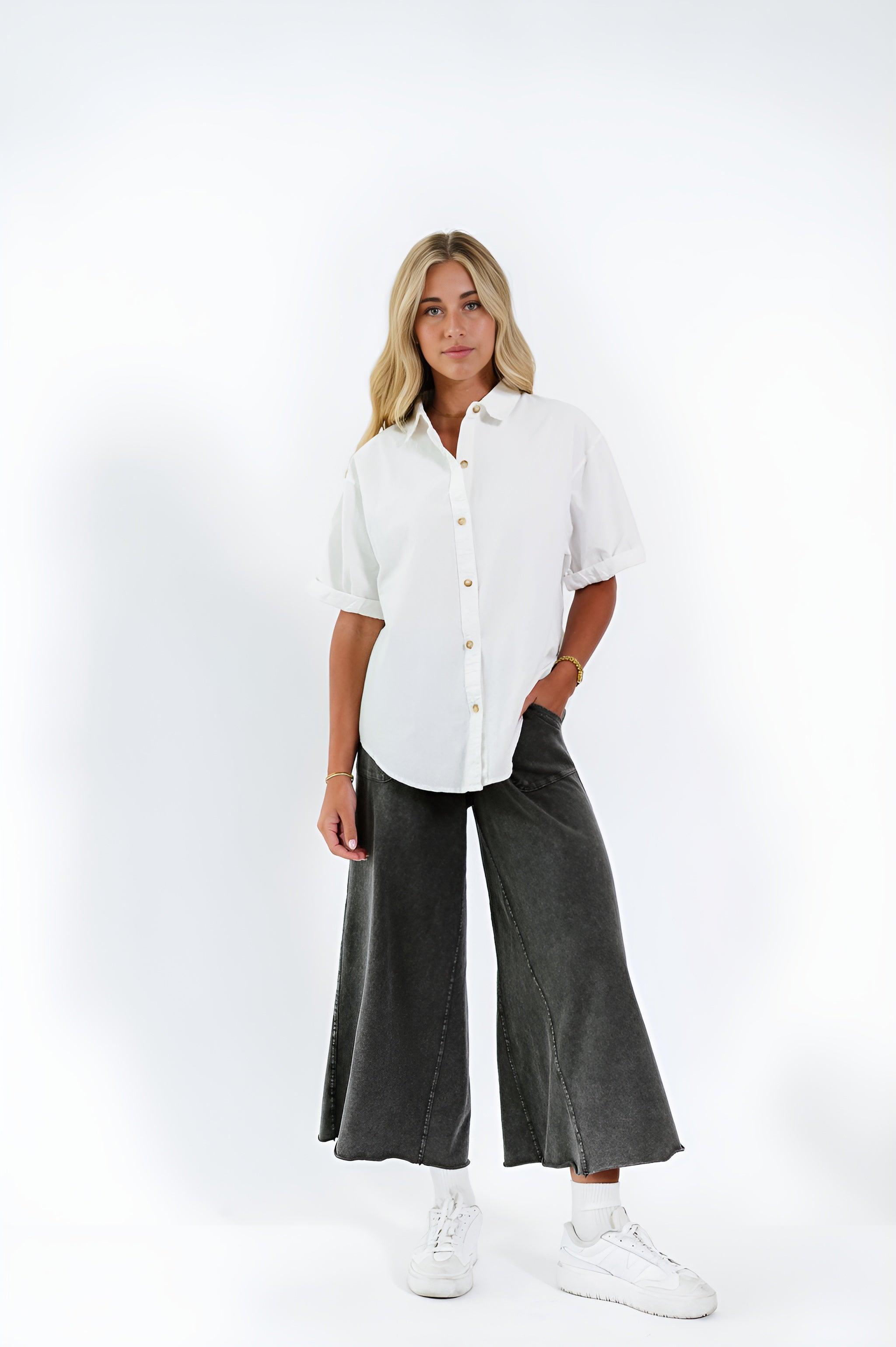Effortless and breathable, these wide leg pants are easy to dress up or down. The drawstring waist is adjustable and comfortable.