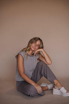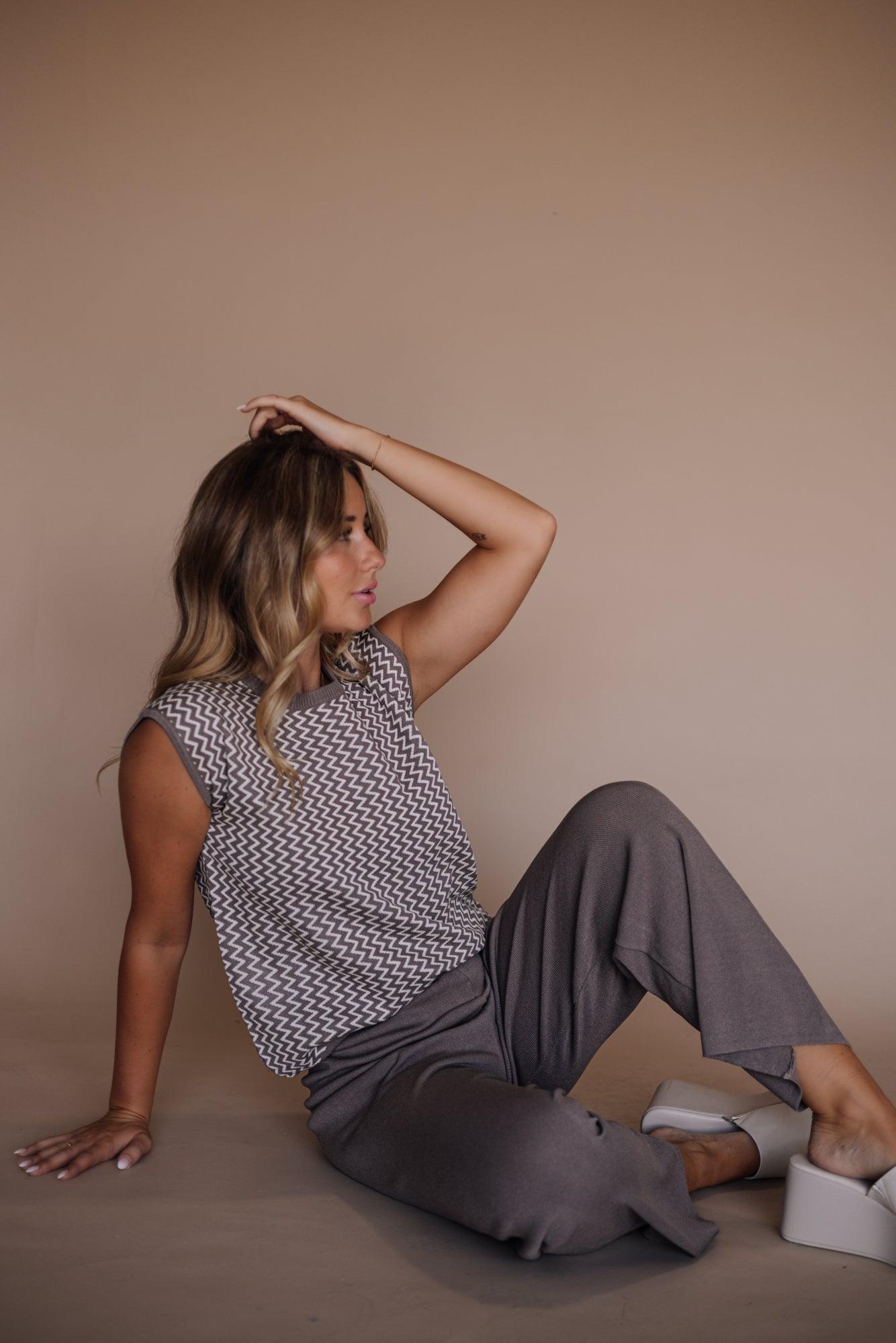 Elevate your athleisure game with our Allie Cap Sleeve & Sweat Set in Khaki. The chevron pattern top boasts a sophisticated touch, while the cap sleeves add a touch of elegance. The matching sweat pants complete the set for a luxurious and tasteful look.