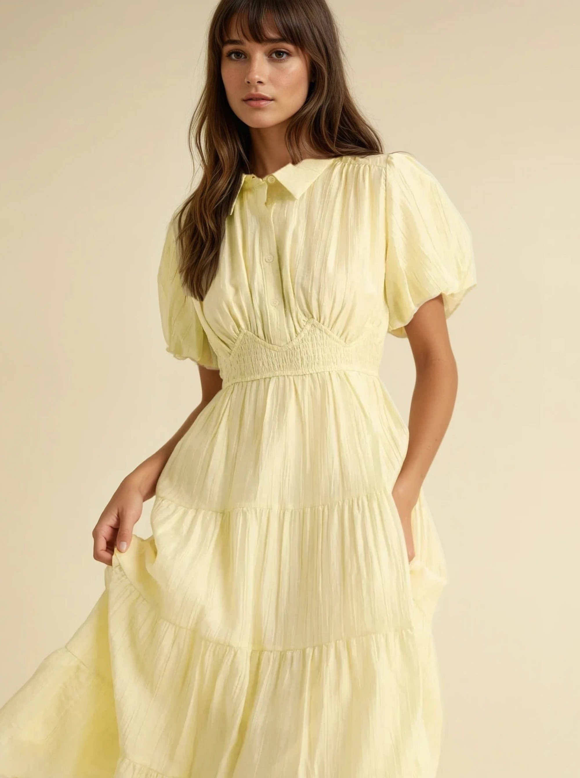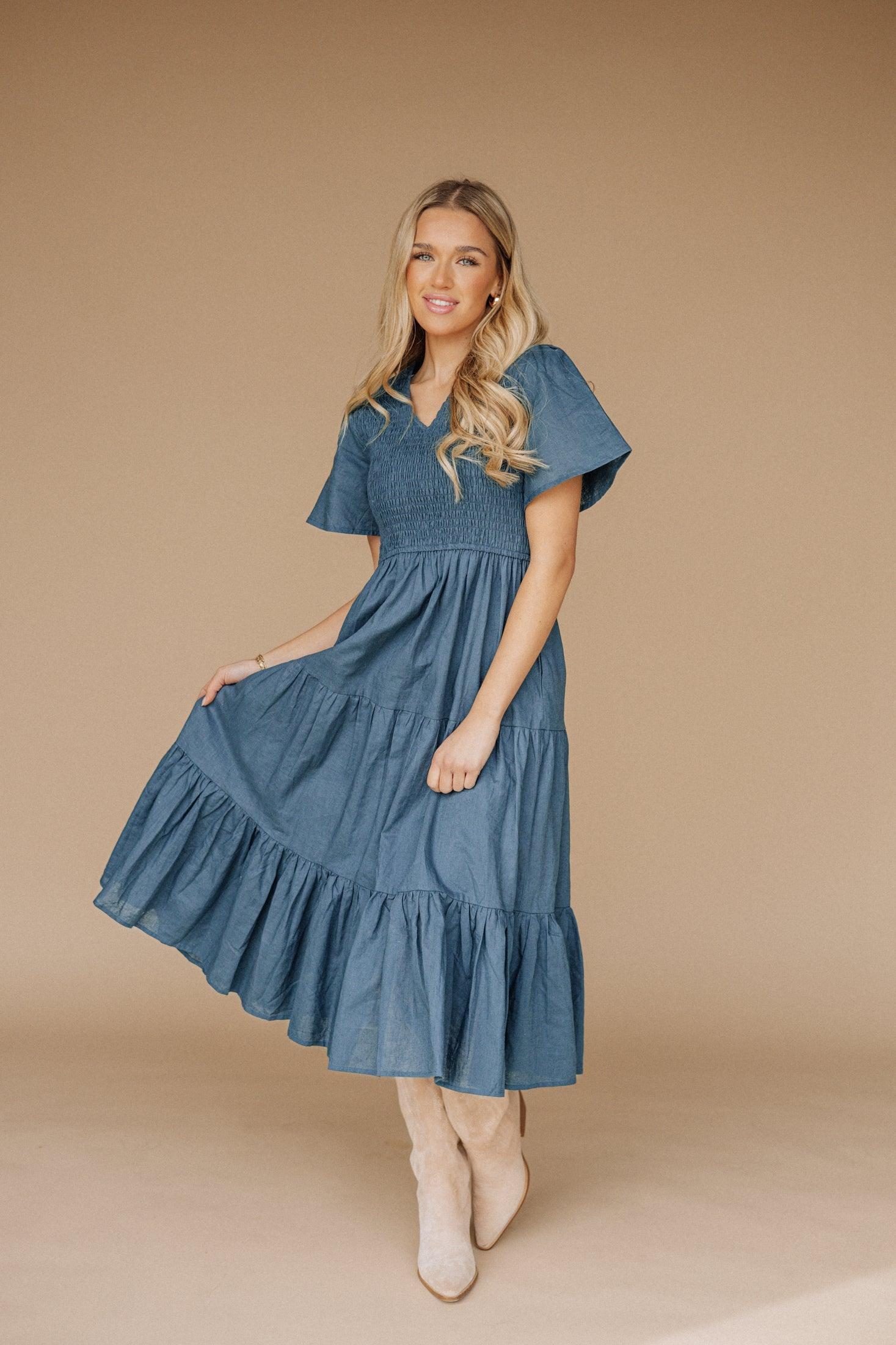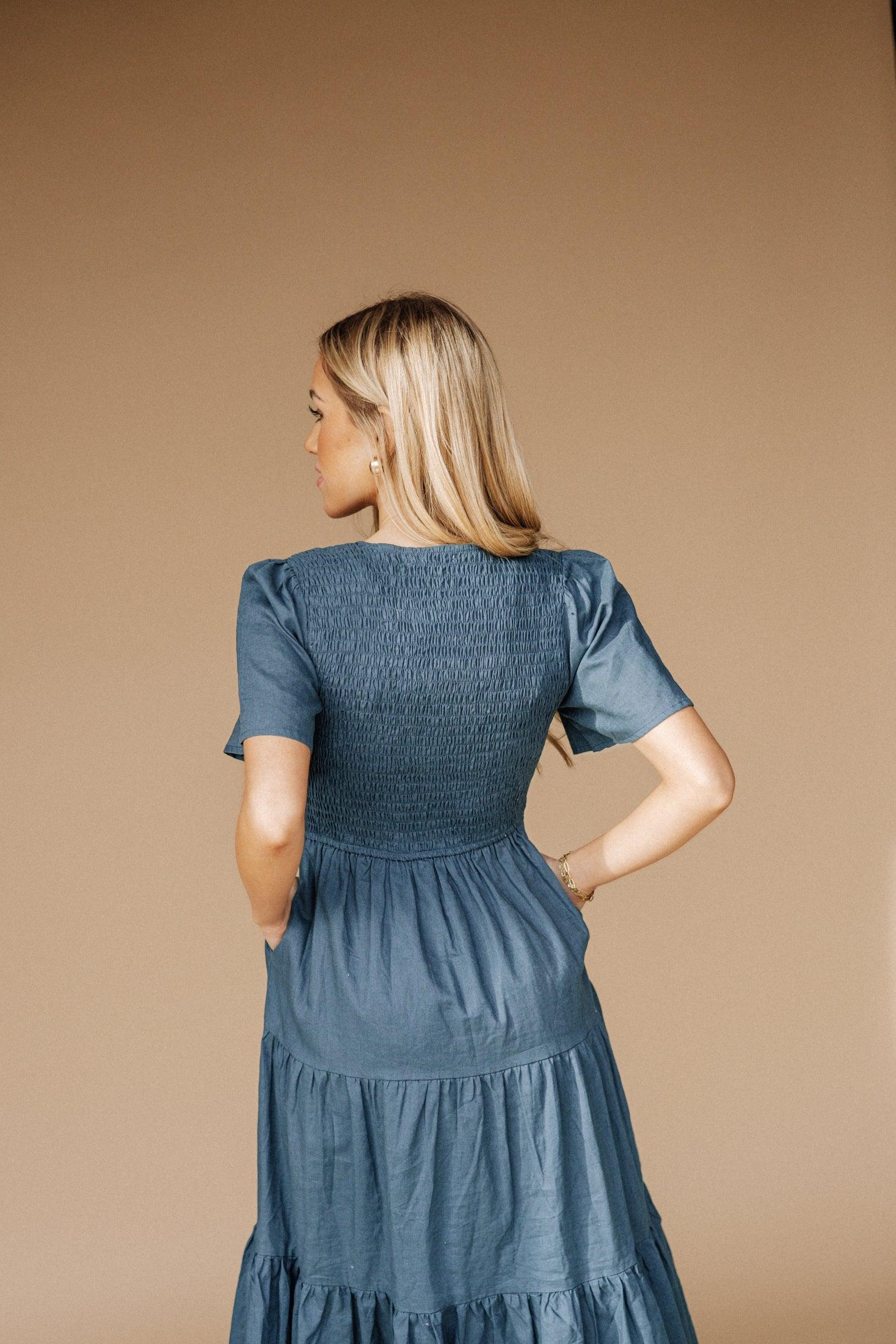 Lillian Smocked Waist Midi Dress in Sky Blue
