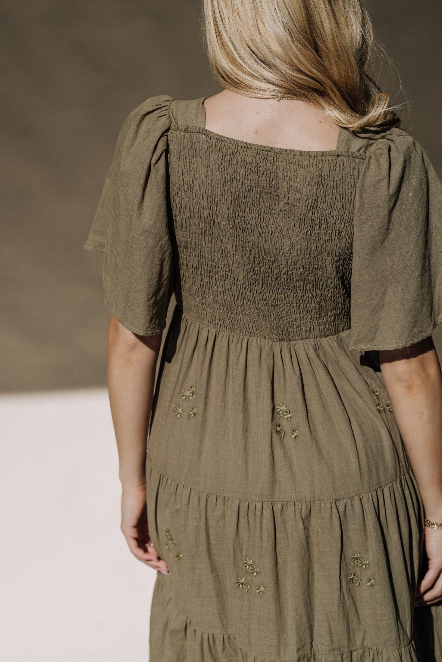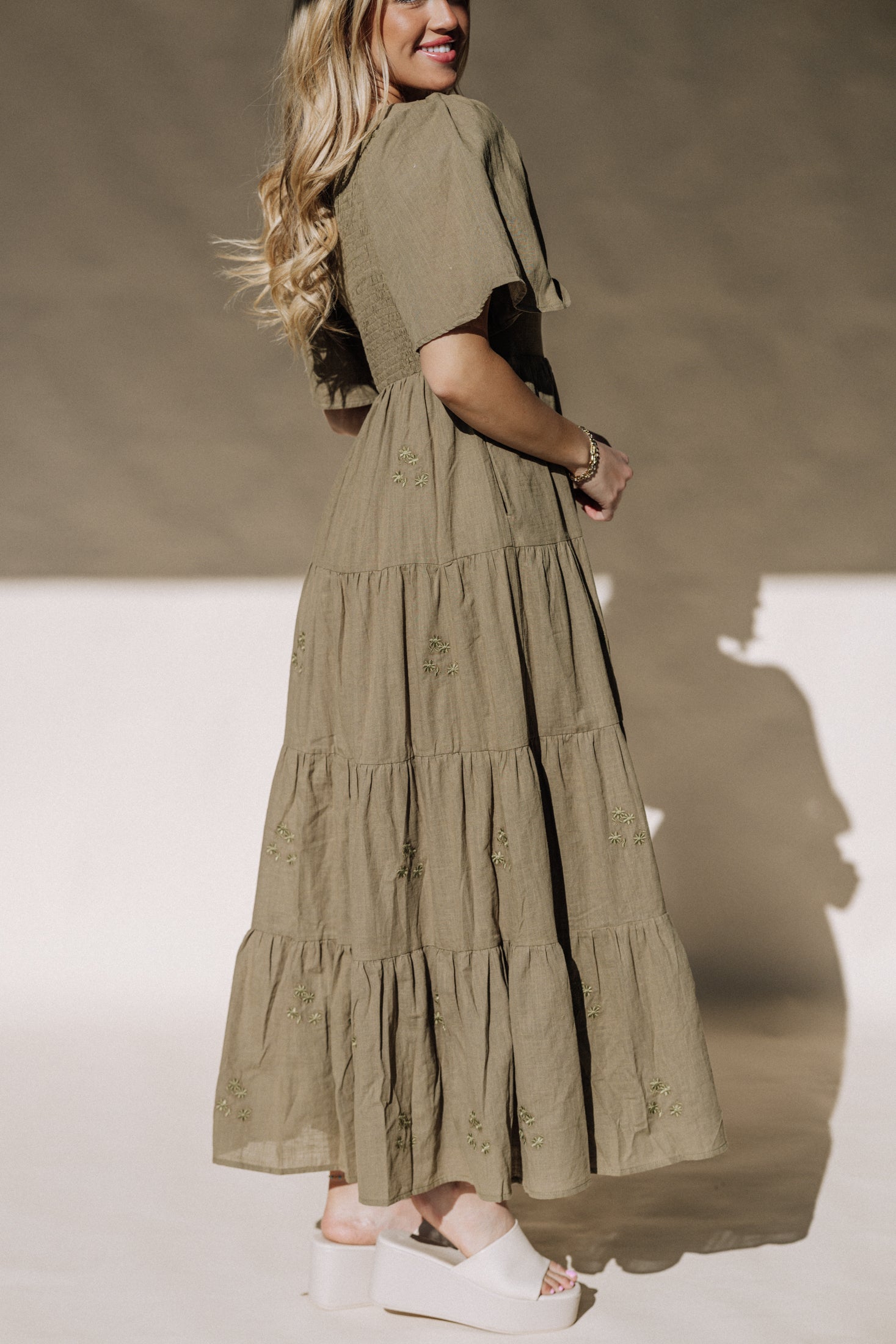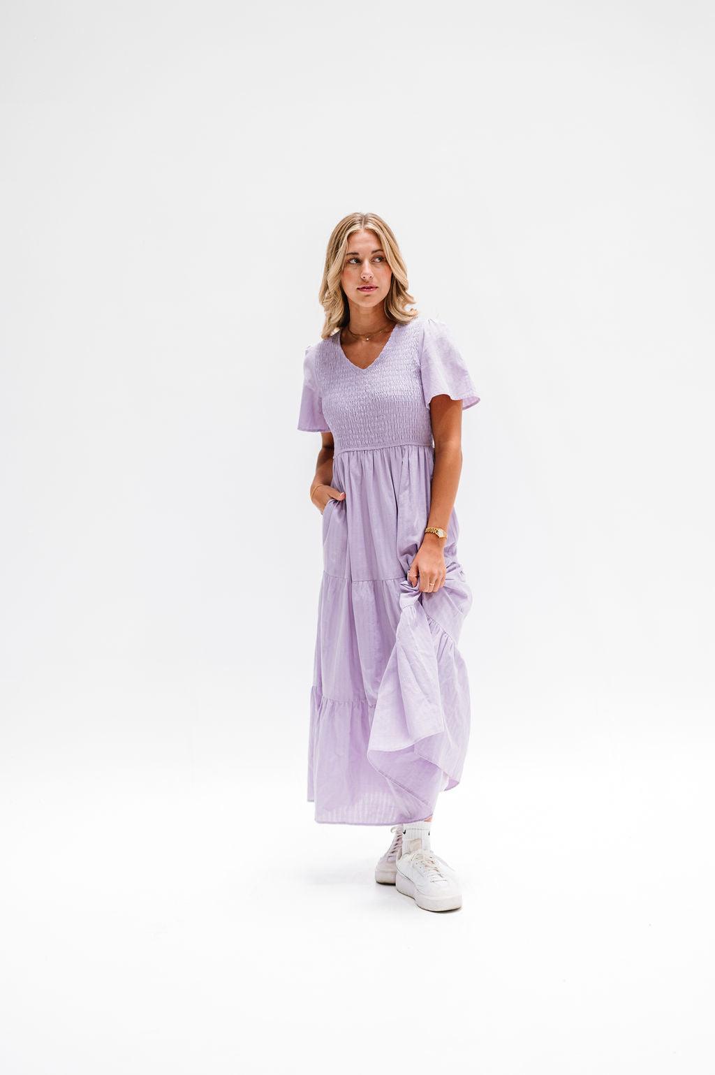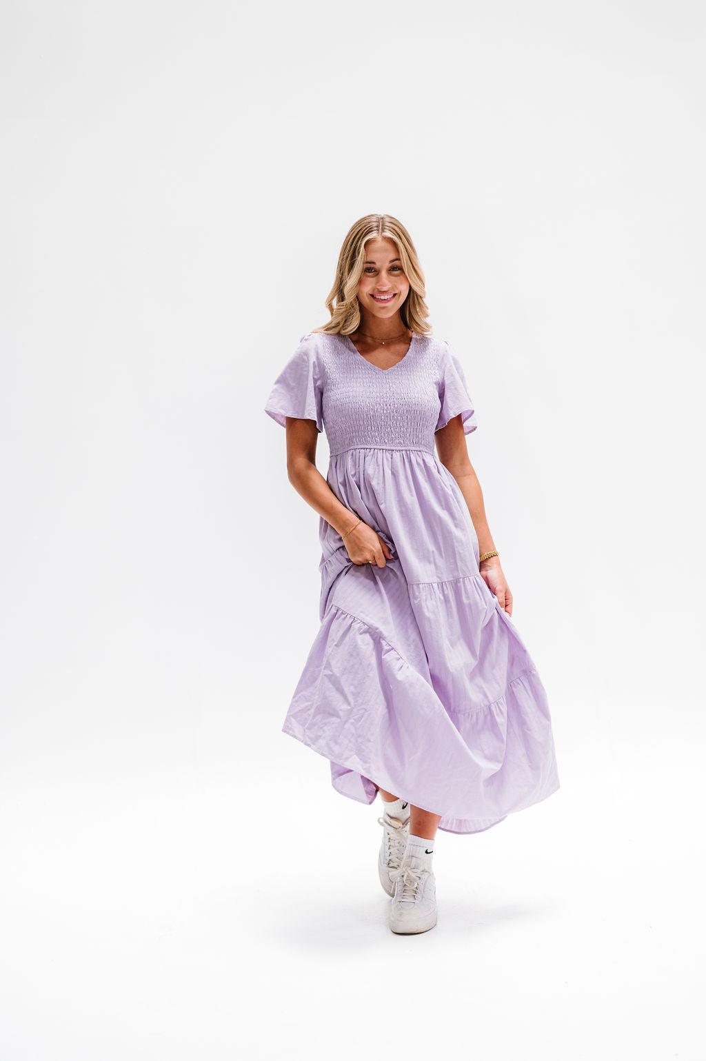 Lillian Smocked Waist Midi Dress in Sky Blue