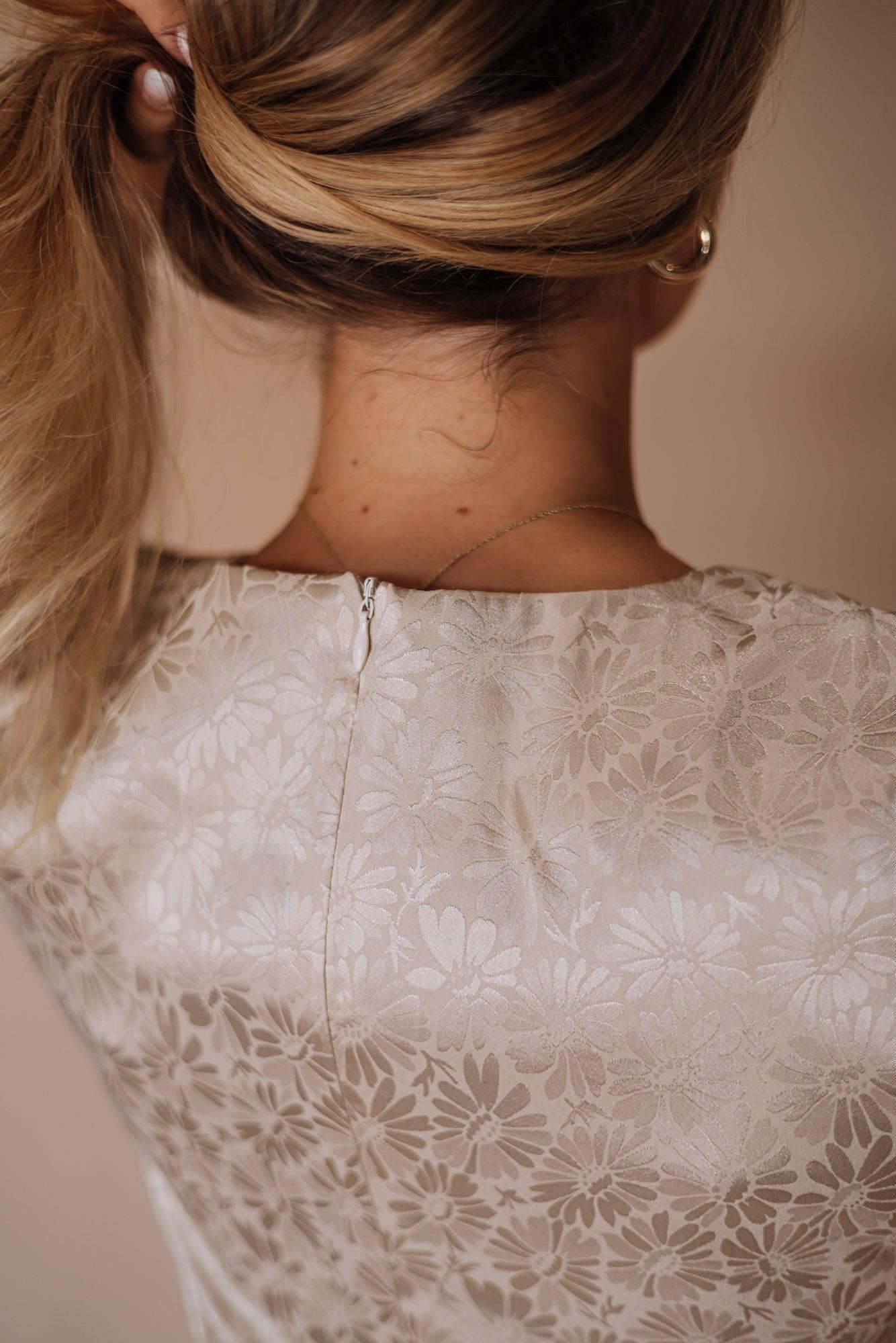 Get ready to turn heads with our Indie Dress! This elegant midi dress features a subtle embroidered floral print, giving it a fun and playful touch. A satin-like feel helps this dress emit a luxurious shine , it's also lightweight and comfortable for all-day wear. Perfect for any occasion!