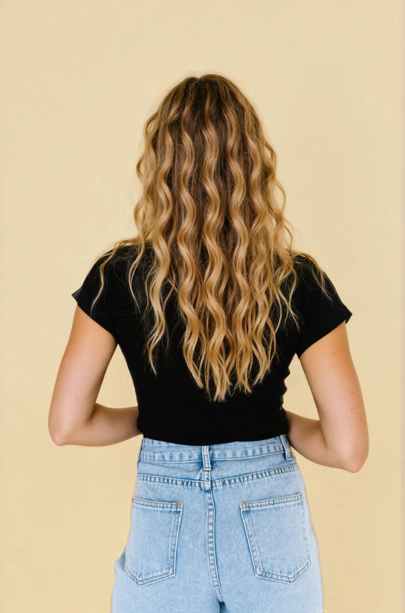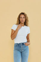 The Chloe Top is an essential for every wardrobe. Crafted from a cotton polyester blend, it offers a snug fit for a comfortable, versatile look. Stretchy material will hug you in all the right places! Perfect for everyday wear.