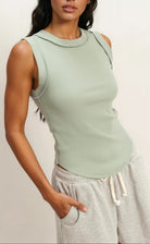Experience effortless style with the Luna Tank in Sage Green—a wardrobe essential that's anything but boring. This cozy cotton-spandex blend hugs you in all the right ways with its ribbed knit texture and satisfying stretch. The crisp crew neckline and raw-edge trim give it that cool, intentional vibe, while the gently curved hem keeps things flattering.